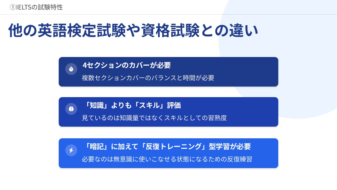 IELTS対策のメインは「知識の詰め込み」ではなく「スキル化のためのトレーニング」