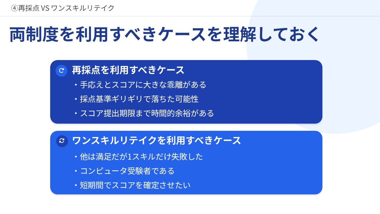| 実施内容 | 採点の見直し(受験はしない) | 再受験 |