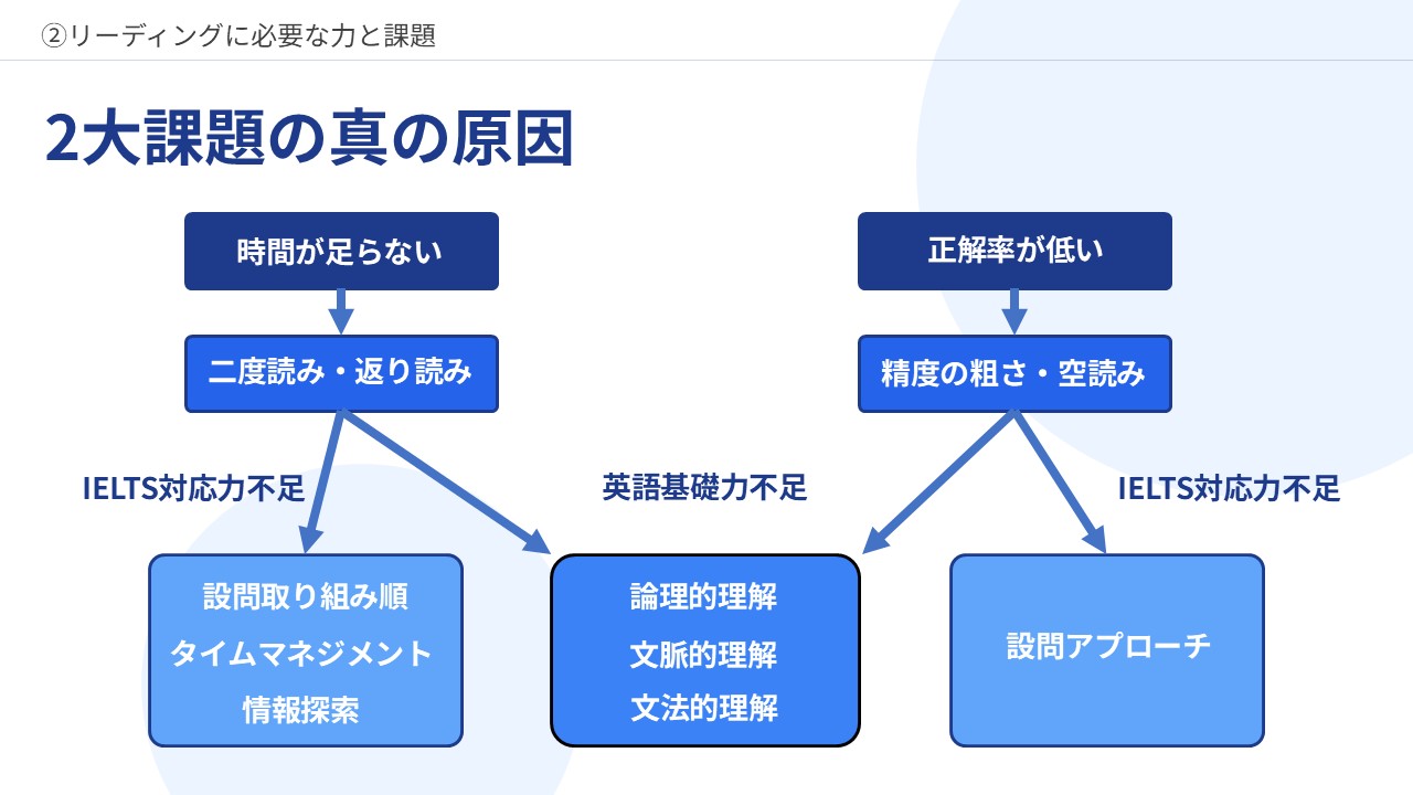 - IELTS対応力の不足によって二度読み・返り読みが発生するケース