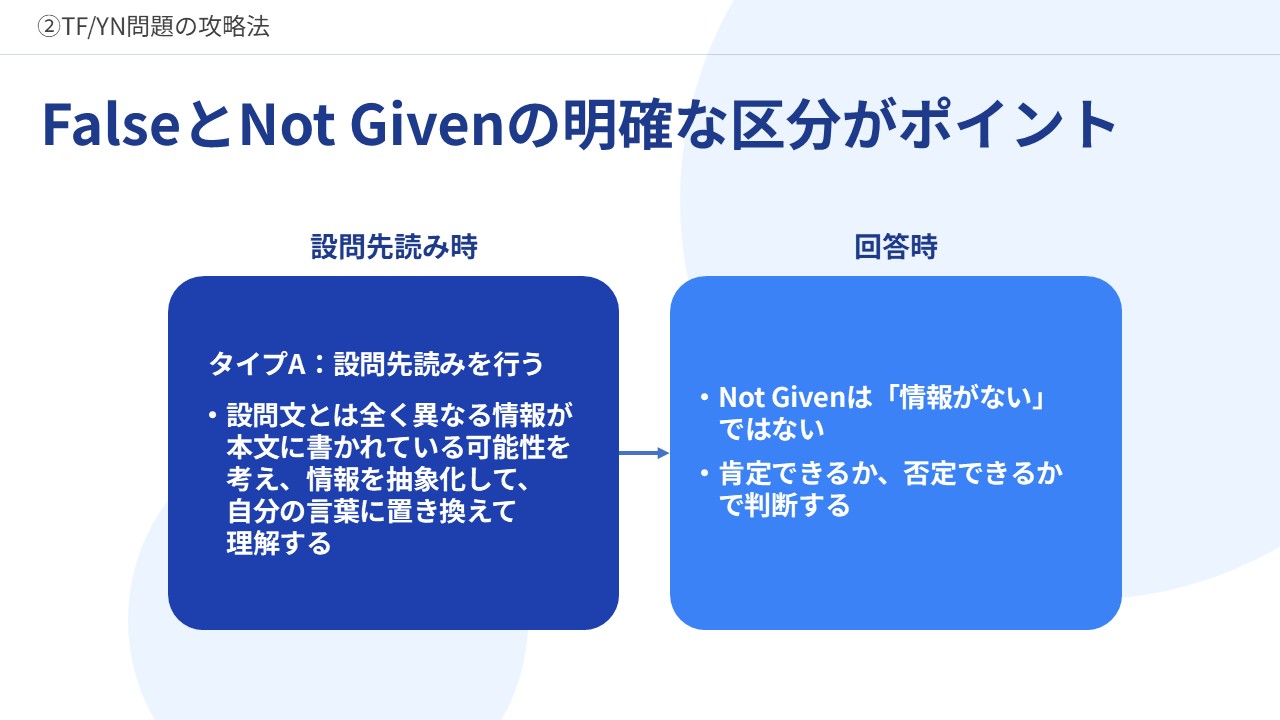 ②TF/YN問題の攻略法