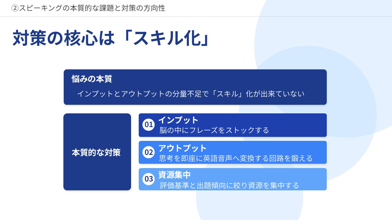 ②スピーキングの本質的な課題と対策の方向性
